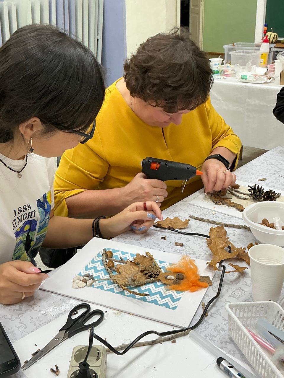 Соңы Нина Сергеевнаның «Шабыт сақтаушы» шеберлік сыныбы болды - табиғи материалдардан қатысушылар құм салынған құтыны ұстайтын сақтаушының бейнесін - алаңның әр кезеңінде алған жылудың, білімнің және шабыттың бір бөлігін жасады.